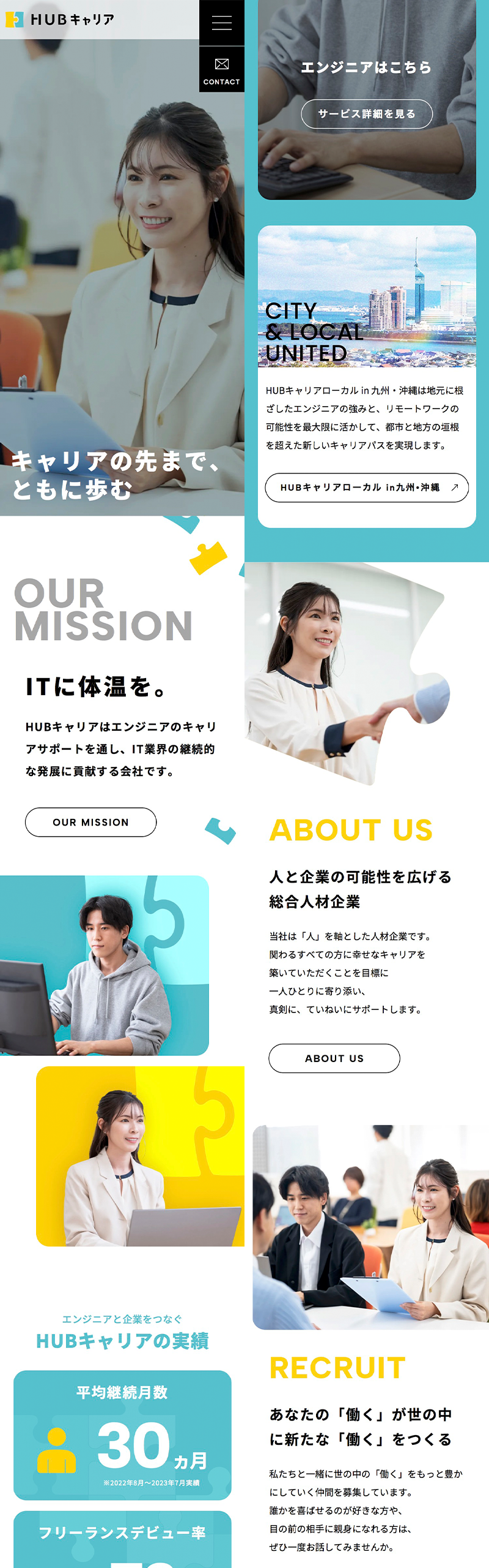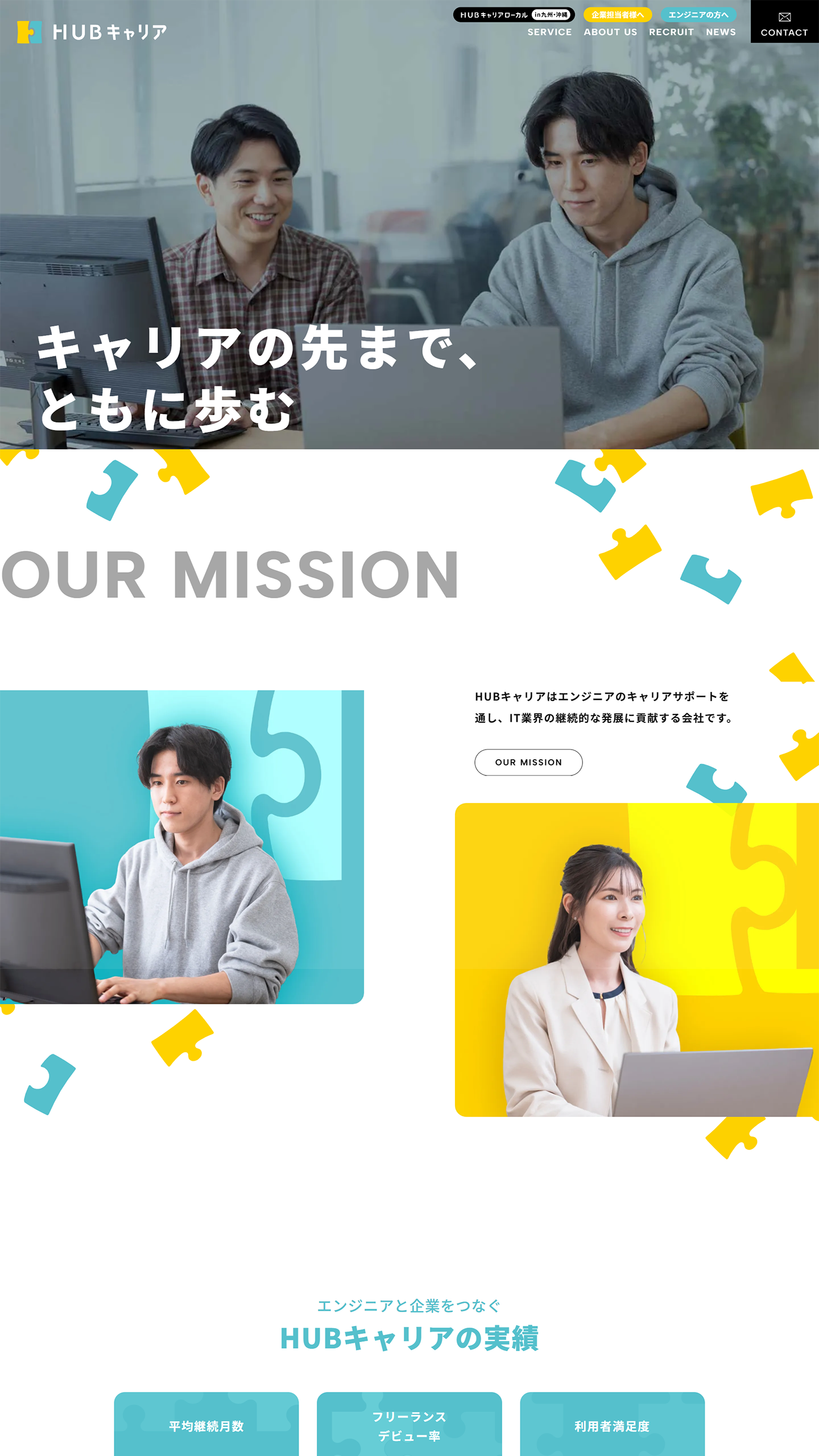 エンジニアファーストの温かみで、SESの新しいイメージを確立 IT人材事業を手がけるHUBキャリア様は、一人ひとりのエンジニアに親身に寄り添い、フリーランスという働き方を通じた成長をサポートする企業です。エンジニアと企業双方から高い満足度を得ていましたが、以前のサイトではせっかくの強みが十分に伝わりきらないことが課題でした。そこで、「ITに体温を。」というメッセージを軸に、IT業界らしいスマートさと人の温かみを両立させたコーポレートサイトへリニューアル。エンジニアファーストの姿勢を前面に打ち出し、一人ひとりと真剣に向き合う同社の想いを丁寧に伝えました。その結果、サイトを通じて企業理念への共感が深まり、「相談して良かった」という声が増加。さらに、リニューアルの成果を受けて九州・沖縄在住エンジニア向けの新サイト「HUBキャリアローカル」の制作・公開にも展開しました。 URL https://hub-career.co.jp/ カテゴリー コーポレートサイト リクルート 業種 BtoB BtoC IT業界 人材関連 プラットフォーム wordpress 所在地 東京都 福岡県 Tweet Share Hatena Pocket RSS feedly Pin it 株式会社フローラ 居宅介護支援事業所 エンリッチ前の記事